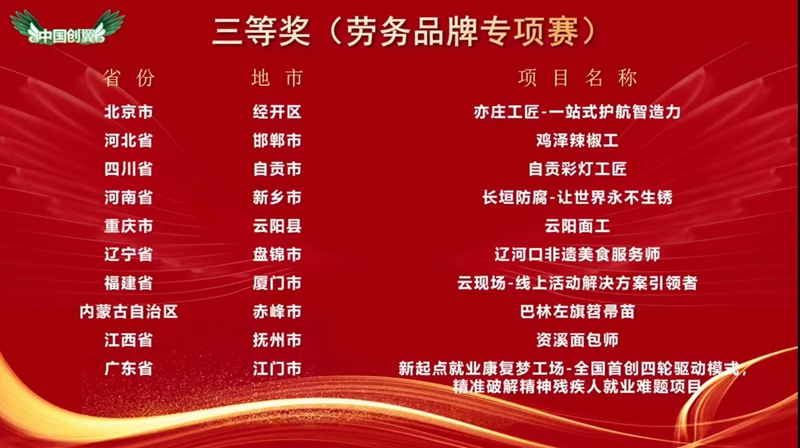 12月11日,第五屆“中國創(chuàng)翼”創(chuàng)業(yè)創(chuàng)新大賽全國總決賽在山東青島落幕,“自貢彩燈工匠”再創(chuàng)佳績,國投集團自貢彩燈運營公司選手袁夢以“自貢彩燈工匠”代表四川省出賽,最終獲得全國總決賽三等獎。